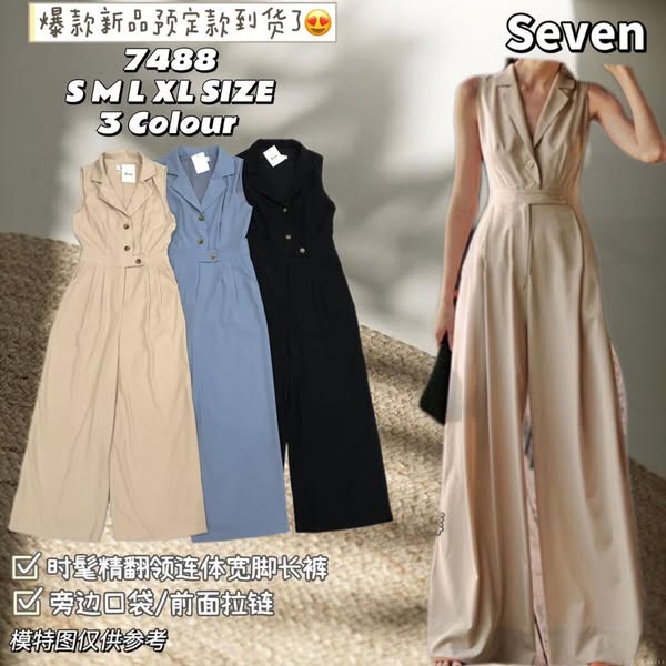 【S7821】【领子无袖纽扣设计连体裤】