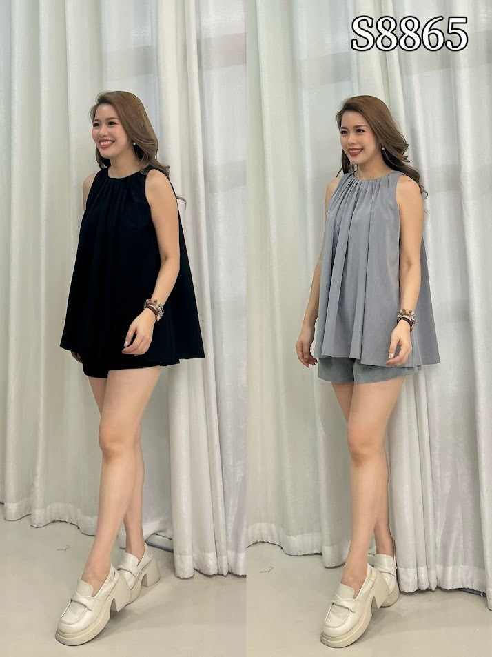 【S8865】💟💟无袖垂感上衣+高腰短裤💟💟